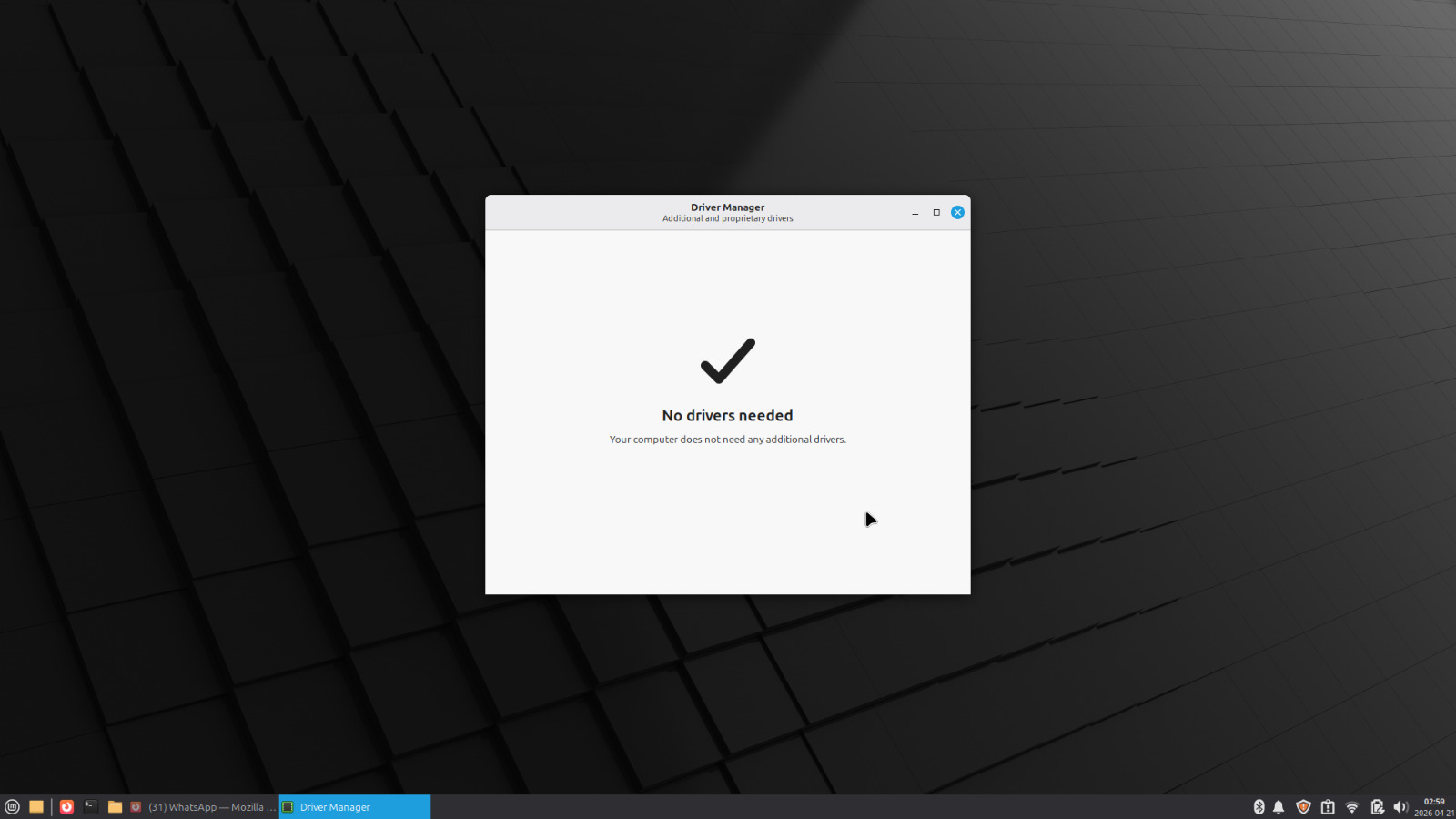 Open Driver Manager. This scans for hardware-specific drivers. On the HP Pavilion, everything worked without additional drivers, but it’s worth checking. If your WiFi card or display requires a proprietary driver, this is where you install it.
