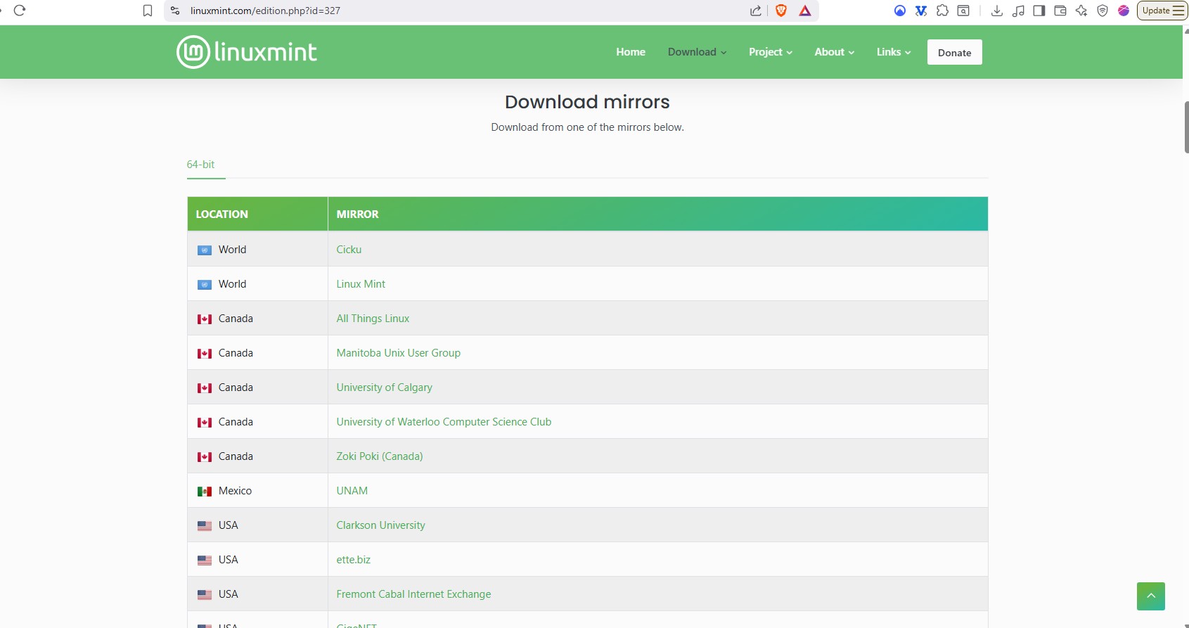 On the download page you can choose from a list of mirrors hosted around the world. Pick the one geographically closest to you for best download speed. Before closing that page, also download the sha256sum.txt file listed alongside the edition. You’ll use it in the next step to verify the download is intact.