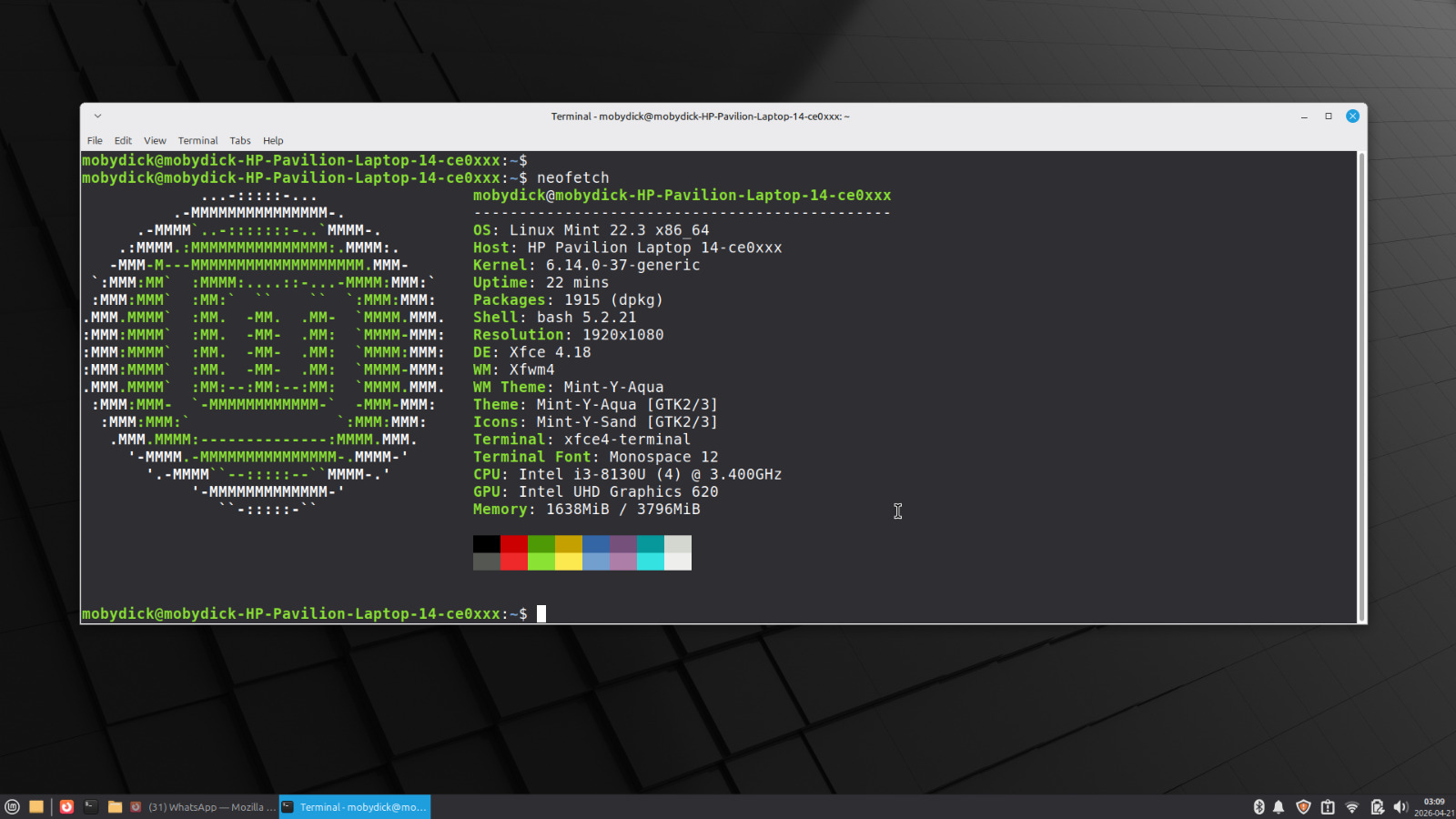 At idle, Linux Mint XFCE uses roughly 1.6 GB of RAM. That leaves about 2.1 GB free for actual work before you’ve opened a single application.