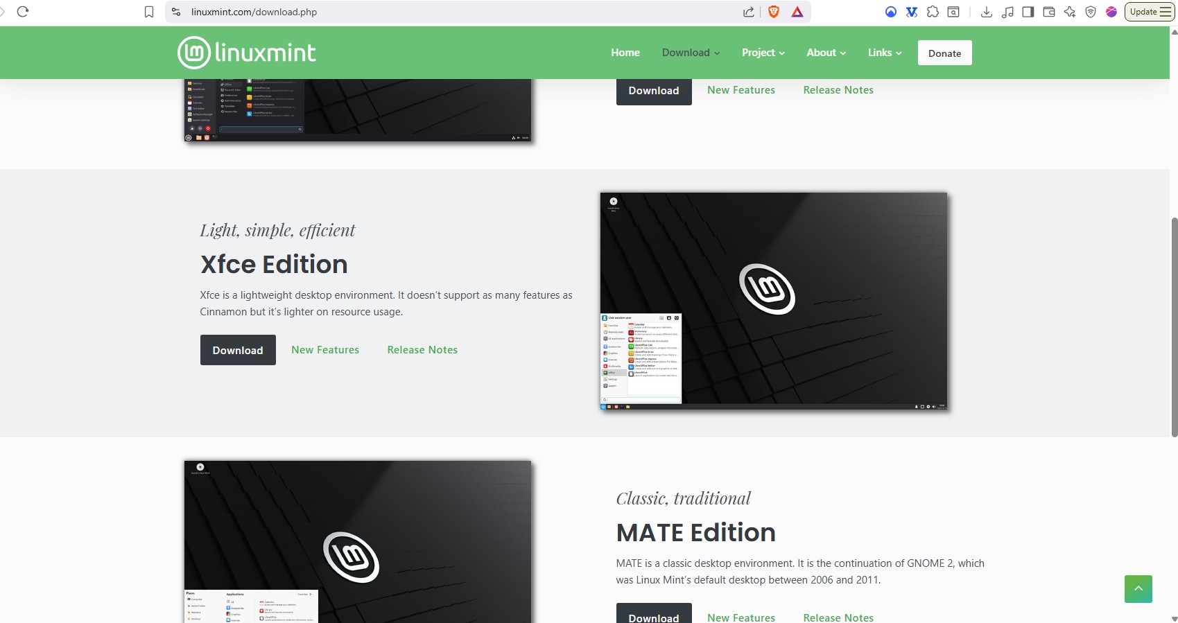 The XFCE edition is built for low spec hardware. Mint comes in three desktop flavors: Cinnamon, MATE, and XFCE. Cinnamon is the flagship and looks the best, but it’s heavier. XFCE is the lightweight option. On a machine with 4 GB of RAM, XFCE is the right call.